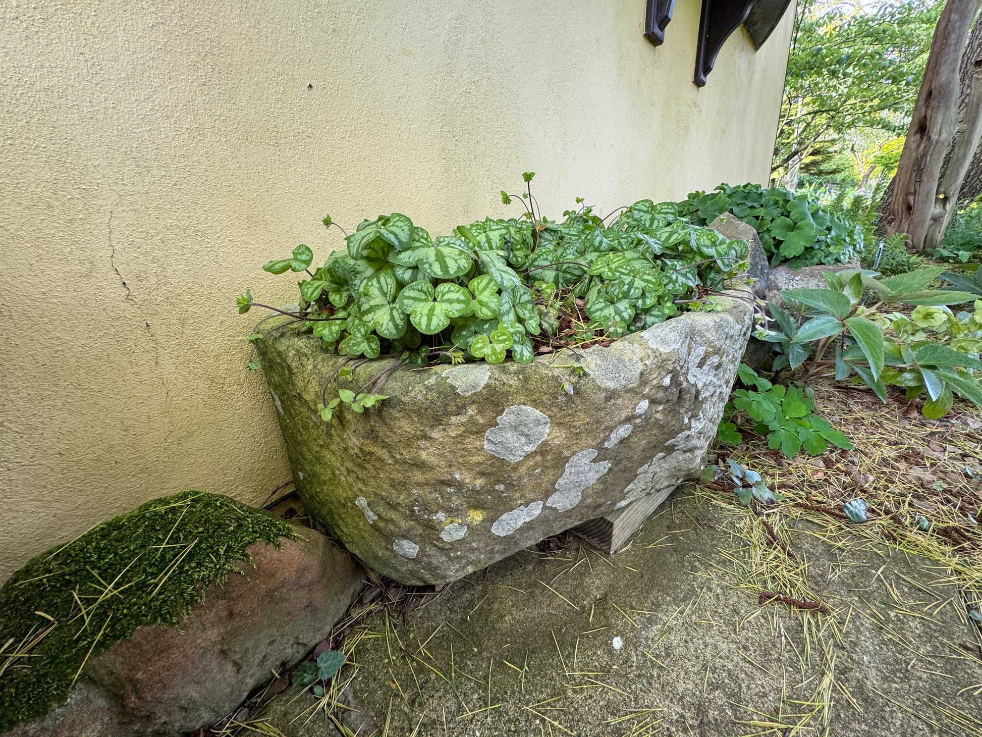 Native to the Russian Far East, China, Korea, and Japan. A slow-growing herbaceous perennial to 10cm, with kidney-shaped, three-lobed leaves, often with silvery marbling above, and solitary violet (not these I am afraid) or purple/blue flowers with conspicuous white stamens appearing in early spring. These plants came from overseas seed and have large leaves like the last image.