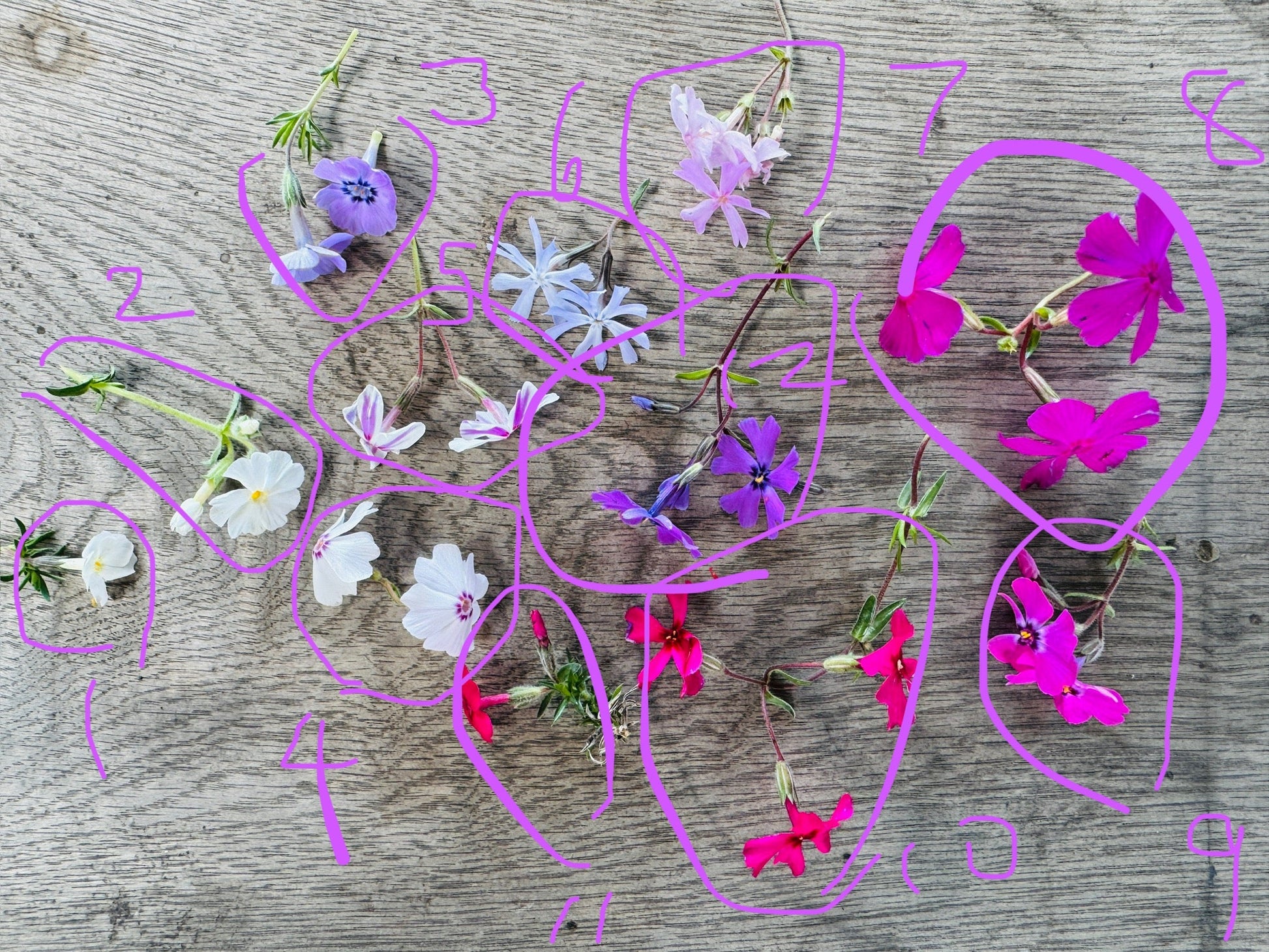 A mossy phlox covered in blue (slightly mauve blue, it is a phlox), blooms on low-growing compact mat of small, needle-like bright green leaves. Flowers from spring to early summer, a weed-suppresser. Hardy, Sun 60cm+W 15cm H What a happy accident setting up my pipes for the plant library I popped a lilac species, Cystus kewiensis and this phlox together. 1 small white, 2 large white, 3 Boothman's variety, 4 White with pink eye, 5 Tammy, 6 P.bifida, 7 Brittonii rosea, 8 Daniel=Camla, 9 Rose cushion, 10 Scarlet flame, 11 Red Admiral, 12 Purple beauty |