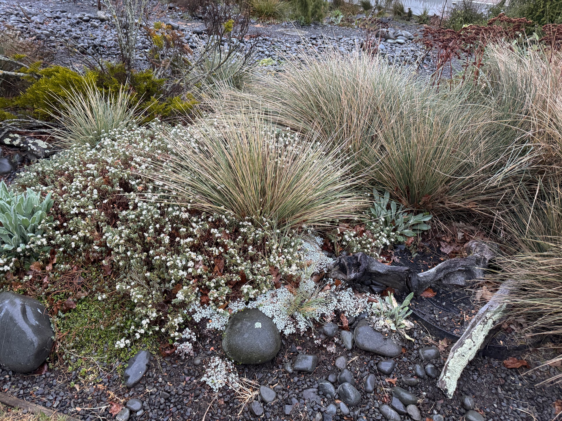 Scabweed. Has grey-blue leaves so small the plant appears like a velvety mould creeping over gritty soil, soft to touch,( ie not a hard mat), powdered with minute yellow flowers in spring. I have it as a layer of grey under my special plants in my rock garden in large swathes, celmisias, miniature manuka, bulbinellas and others pop through happily… Ideal trough plant. Protect from excessive winter wet as portions can die back. One way is to provide a layer of 5mm chip or sand. Ensure free draining soil. Easy and hardy, drought tolerant once established. Native. 2cm