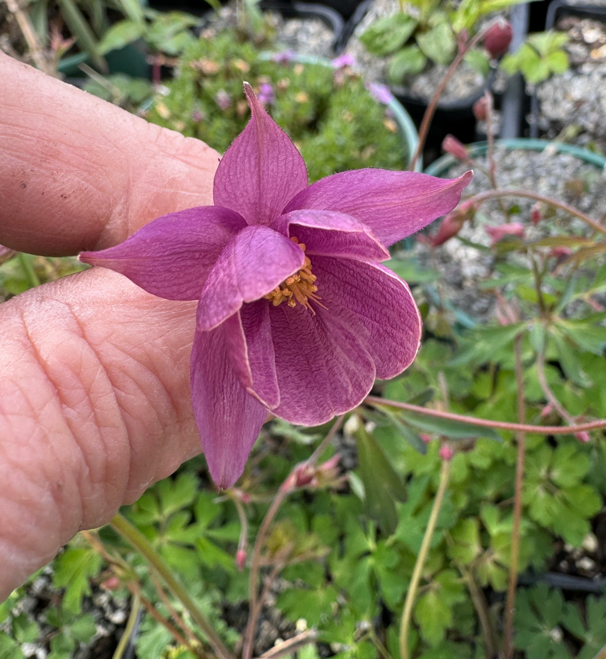 RHS Award of Garden Merit, small pendant bells are delightful and are present for a long time. Easy to care for and seeds gently in a trough or rock garden. It will also be pretty in the front of a border. An excellent plant for combining in arrangements in a pot giving an airy feel. Dusky mauve colour. 60-70 cm high. Still very small, so a small price.